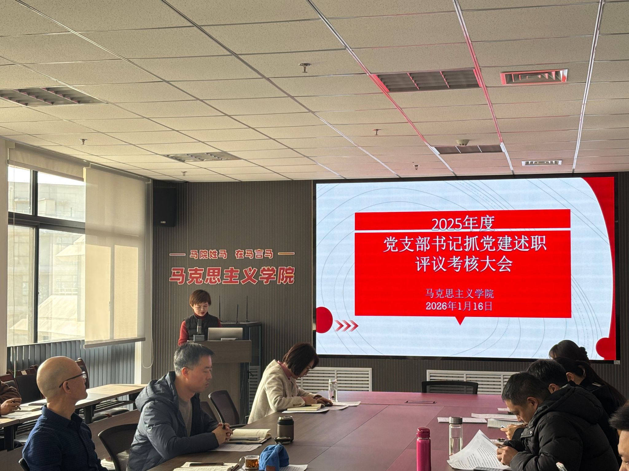 2026年1月16日下午,学院在教七楼514室召开2025年度党支部书记抓党建述职评议考核会。会议由党委副书记程丹主持。