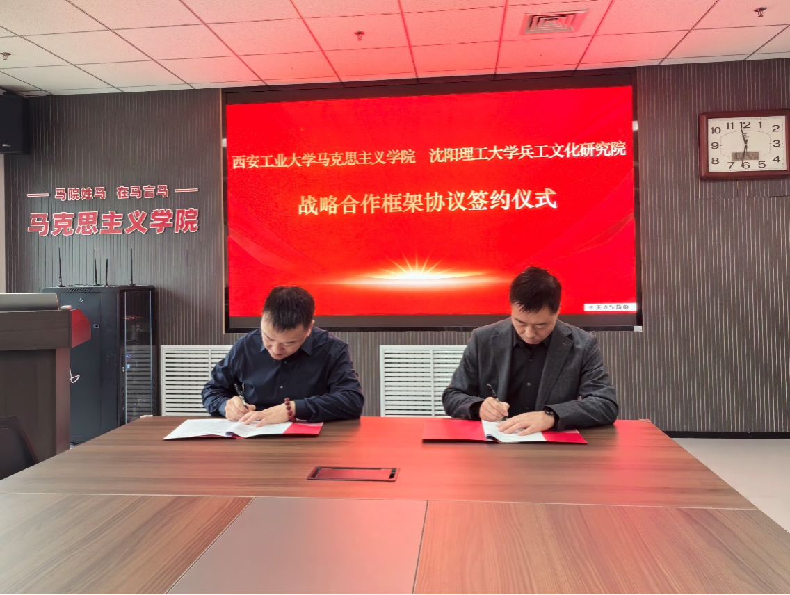 10月14日上午,沈阳理工大学兵工文化研究院院长吴智教授一行来我院就双方战略合作签订协议。院长梁华平、副院长孟文科及中国近现代史纲要教研部主任、研究生思政公共课教研部主任等参加了签订仪式。梁华平院长对吴智院长一行的到来表示热烈欢迎,并就学院目前的发展状况进行了介绍,同时表示协议的签订将进一步加强双方的学术合作交流,促进彼此科研水平的提升。吴智院长介绍了沈阳理工大学兵工文化研究院的创设背景和发展特色,表示协议的签订首先是两所兵工院校两所学院的合作,希望下一步能加强“兵工七子”的战略合作。