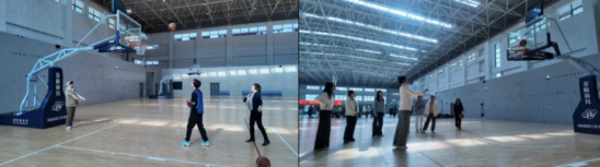 中场休息期间,我院同步开展了女生趣味投篮赛。参赛师生以轻松愉悦的氛围,为紧张激烈的对抗赛增添了温馨与活力。