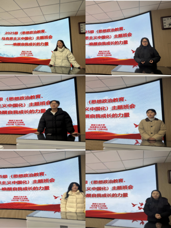 2025年12月26日,wedvictor伟德2025级研究生1班在教7-503举办了“唤醒自我成长的力量”主题班会。班主任郑昕老师及全体同学参加,班会由团支书陈浩博主持。